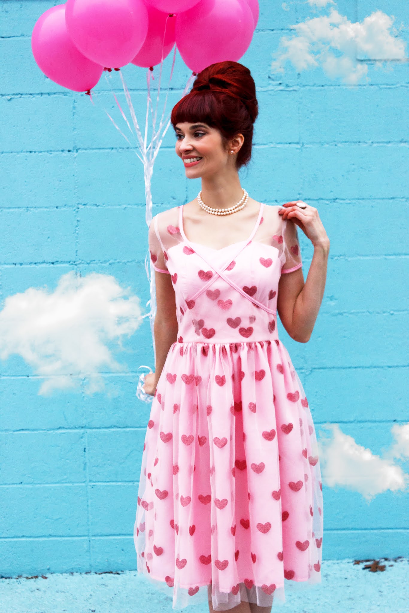 Shopping Info: Light Pink & Sparkling Hearts Dorothy Swing Dress and Pink Cardigan from Unique Vintage