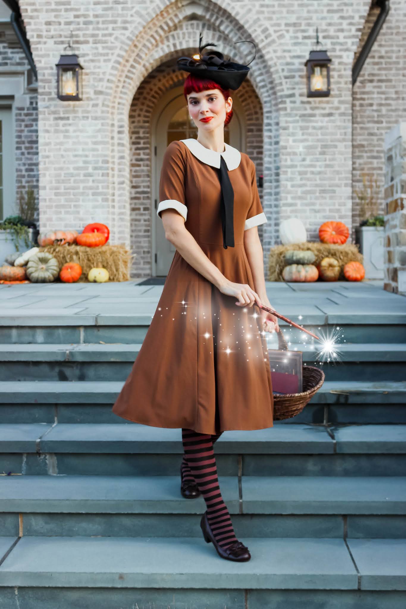 Trying to use all my witchy-wear before the 31st! I love this dress because it's just the right blend of October and November, so this year I decided to do a little magical conversion to make it an impromtu witch outfit. I collaborated with the top creators of all things colorful, WeLoveColors, on this project and their Black Stripe Tights in Mocha really sell the look!