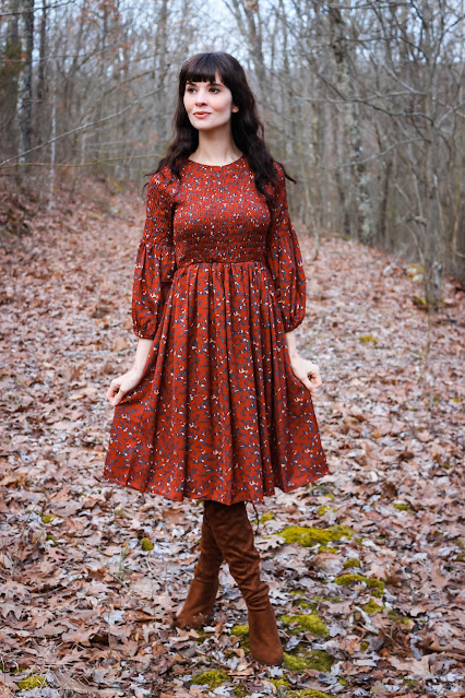 So, while it may be spring in the rest of the northern hemisphere, it still looks like late autumn up here. Maybe that's why I had this Rust Floral Dress from Petallush in mind when they asked me to do a collaboration with them. I know I was also thinking of the longer sleeves being perfect for Valentine's Day, but I also know that this length and color would be perfect with my tall suede boots and a chunky cardigan, hat optional for boho-chicness.